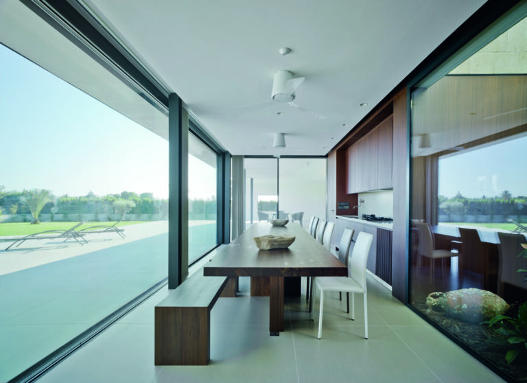 Drzwi zewnętrzne Pivot to propozycja skierowana do tych, którzy pragną czegoś więcej, niż standardowe rozwiązania. Produkt ten dostępny jest na rynku już od dłuższego czasu i przeszedł lata testów, dopiero teraz zyskując znaczną popularność. Jego oś obrotu została przesunięta, a zawiasy umieszczone na górnej i dolnej ramie, co pozwala na stworzenie systemu otwierania wahadłowo-obrotowego. Efektem tego jest możliwość tworzenia drzwi o imponujących rozmiarach i wadze. To niezwykle estetyczne rozwiązanie, bowiem dzięki niemu uzyskać można jednolitą „ścianę”, która od samego wejścia do budynku wyróżnia się spektakularnym wyglądem.