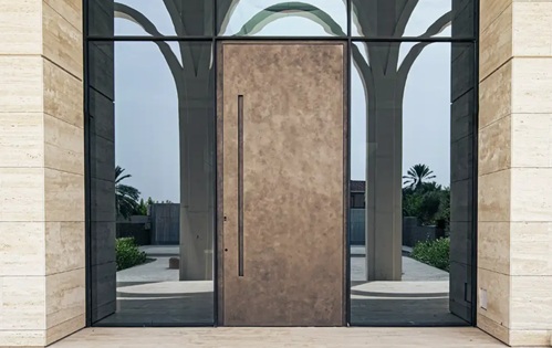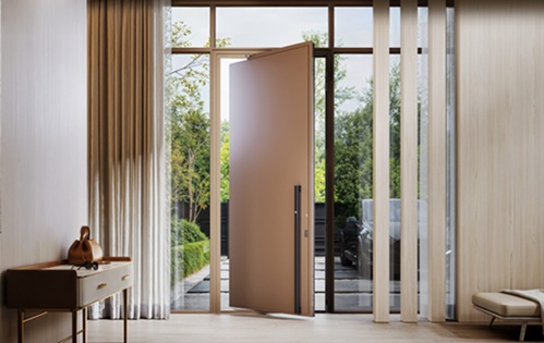Drzwi ukryte w elewacji – Te drzwi znikają w elewacji, tworząc spójną, luksusową powierzchnię, która zachwyca subtelnym pięknem i nowoczesnym podejściem do designu przestrzeni.