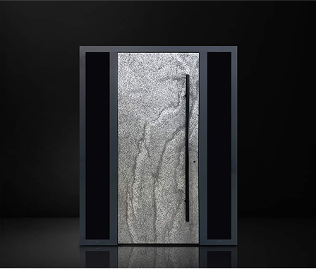 Dzięki połączeniu aluminium i kamienia drzwi te oferują doskonałą izolację termiczną i akustyczną, spełniając najwyższe standardy energetyczne.