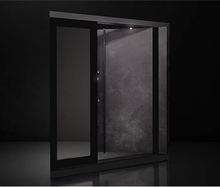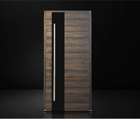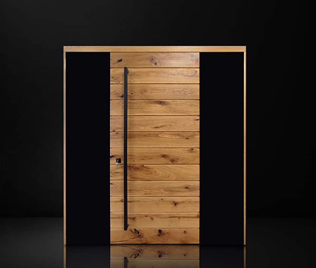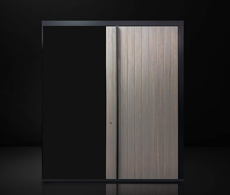 Kolekcja PIVOT SPIEK redefiniuje sztukę designu, łącząc drewniane ramy z trwałymi spiekami kwarcowymi o surowym pięknie. Drzwi te wyróżniają się odpornością na zmienne warunki pogodowe, a dzięki specjalnym zawiasom otwierają się płynnie i bez wysiłku.