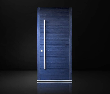 Nasze drzwi wyróżniają się nowoczesnym wzornictwem i imponującymi wymiarami, które tworzą efektowny, architektoniczny akcent w każdym domu. Dzięki wykończeniu z orzechowego forniru od wewnątrz, wprowadzają równocześnie elegancję i ciepło do wnętrza.