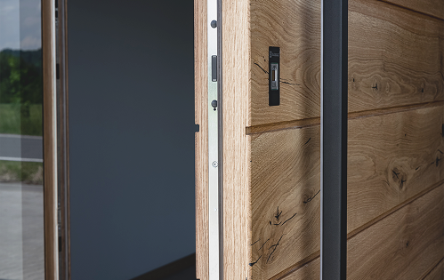 Drzwi zewnętrzne z kolekcji TOP DESIGN WOOD łączą naturalną estetykę drewna z nowoczesnymi technologiami ochrony, oferując wysoką odporność na warunki atmosferyczne oraz niski współczynnik przenikalności cieplnej. Dzięki zaawansowanym systemom antywłamaniowym, w tym elektronicznemu systemowi zamknięcia AirKey, oraz wysokiej jakości okucom, te drzwi zapewniają bezpieczeństwo i komfort użytkowania.