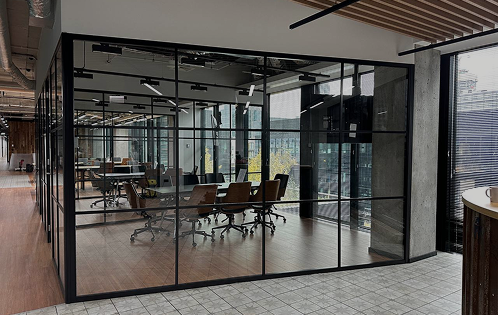 Okna wewnętrzne wykonane z lekkich materiałów aluminiowych lub stalowych nie obciążają konstrukcji ścian działowych. Dzięki temu możliwy jest szybki i czysty montaż, bez konieczności ingerencji w konstrukcję budynku.