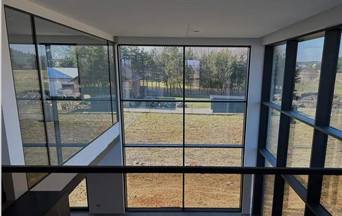 Duże przeszklenia w oknach wewnętrznych umożliwiają swobodny przepływ światła między pomieszczeniami, poprawiając komfort użytkowników. Dzięki temu nawet wnętrza bez okien zewnętrznych mogą być dobrze doświetlone w ciągu dnia