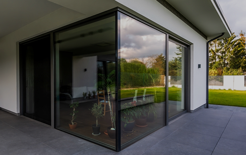 GlassCorner, wykorzystywane również w oknach tarasowych przesuwnych, pozwala na stworzenie przeszklonego naroża domu, zachowując jednocześnie funkcjonalność wyjścia na zewnątrz.