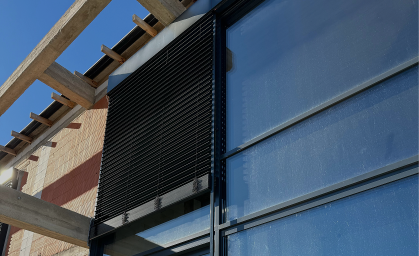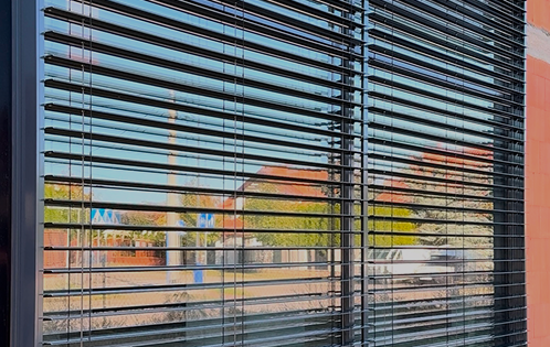 Żaluzja fasadowa wielkogabarytowa może zostać zaprojektowana w taki sposób, aby wizualnie nie odbiegała od tradycyjnych żaluzji fasadowych stosowanych do standardowych okien.