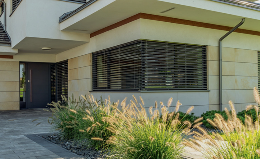 W żaluzjach narożnych Corner zastosowano innowacyjne skrzynki narożne, które stanowią kluczowy element konstrukcji, pozwalając na harmonijną integrację systemu z narożnymi oknami.