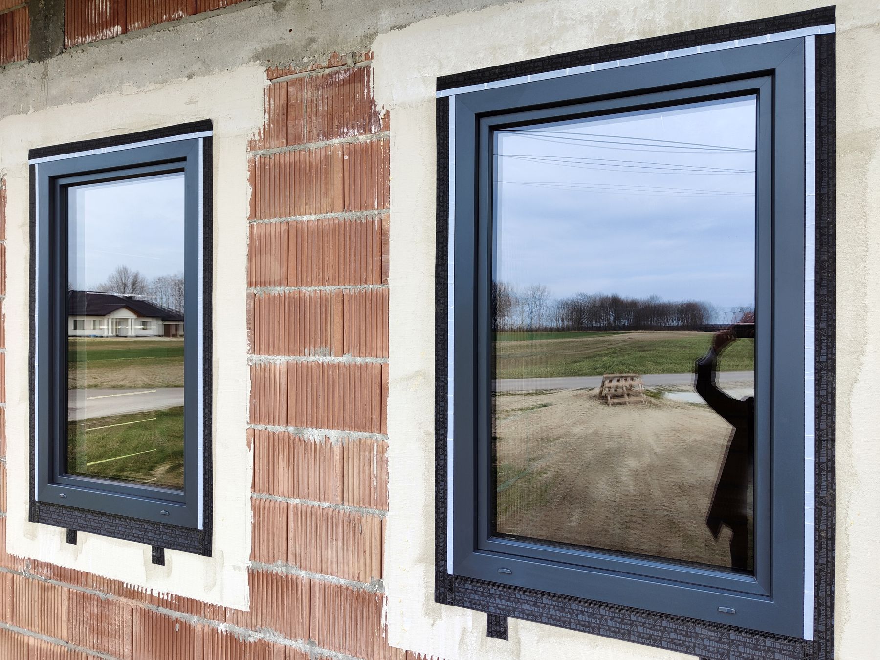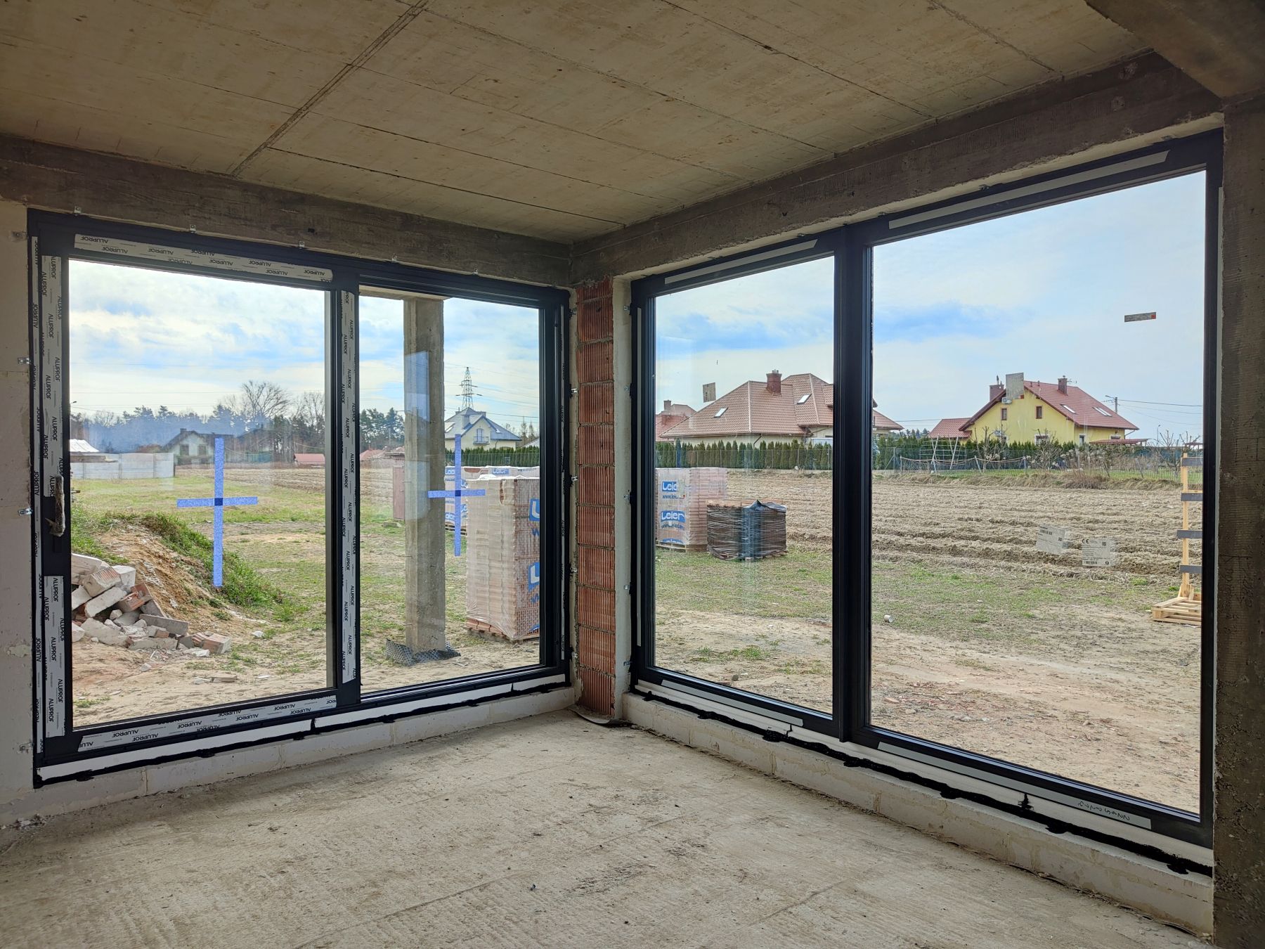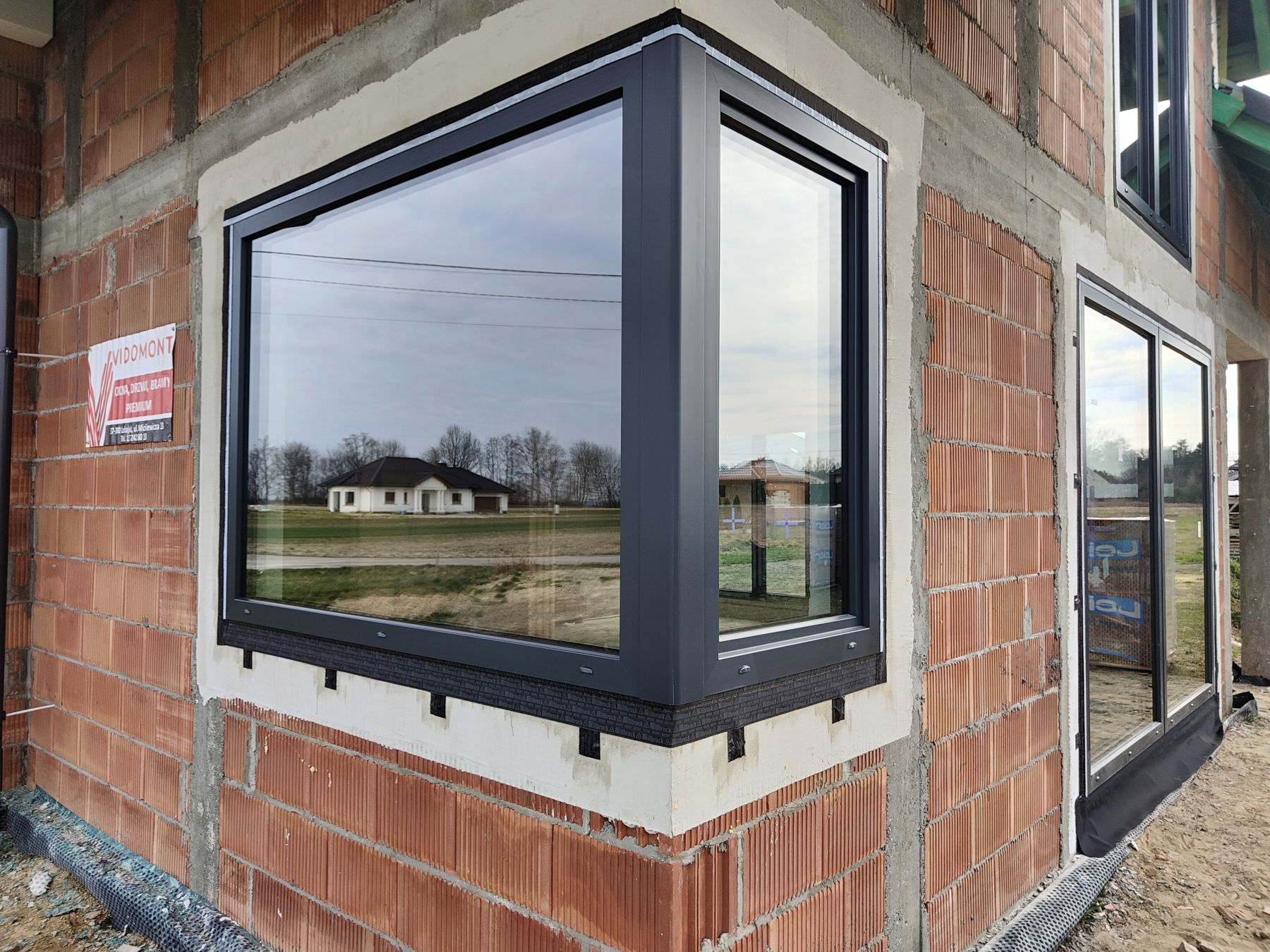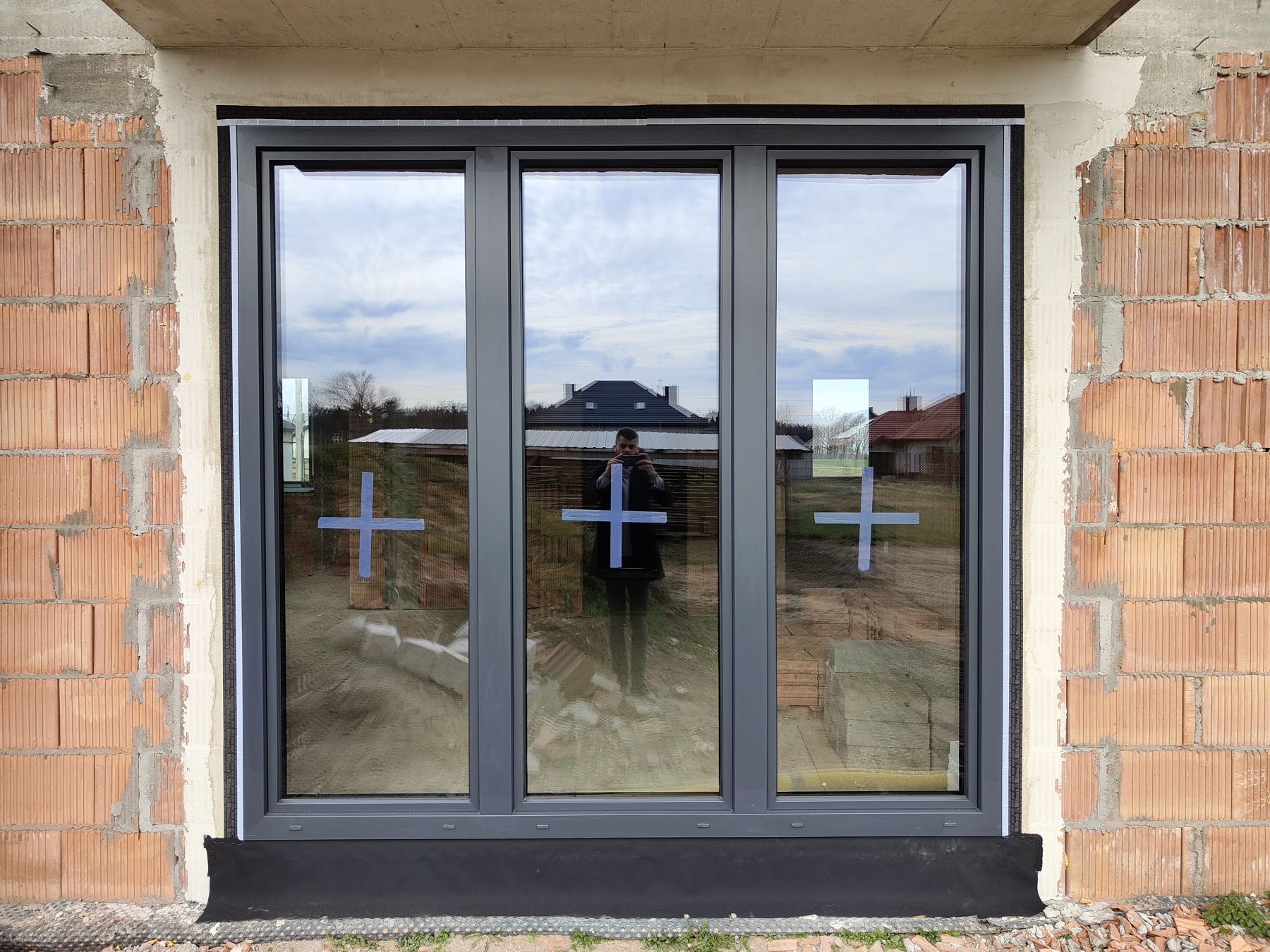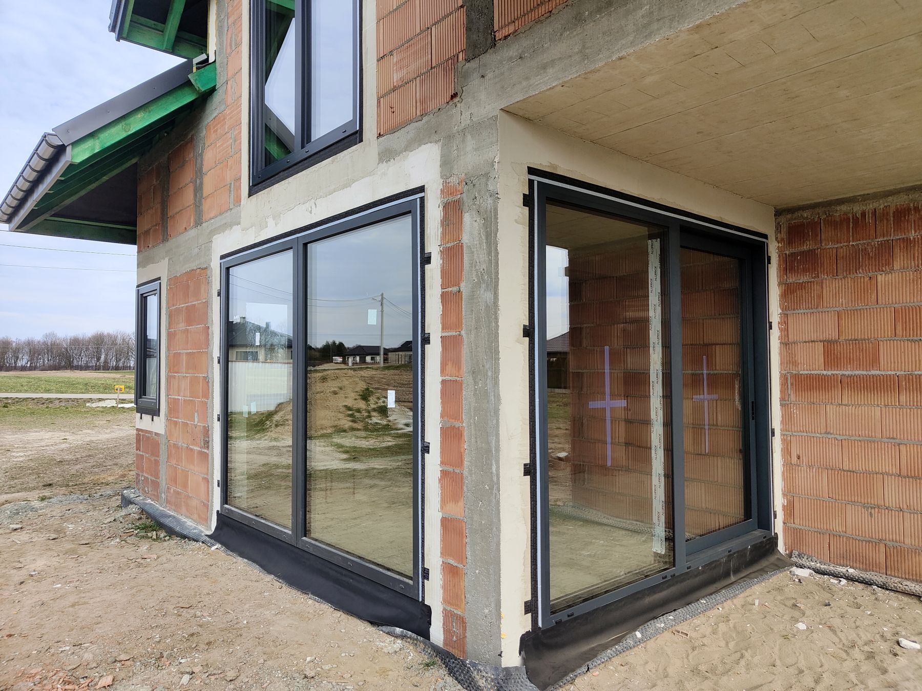 Realizacja okien PCV i okna przesuwnego aluminiowego dla projektu domu Archon – Dom w Śliwach 2. Ciepły montaż okien wykonany na materiałach marki Illbruck. Do szczelnego montażu użyliśmy: ciepłych parapetów XPS, podwalin klinarytowych, membran wewnętrznych, membran zewnętrznych, klei polimerowych, mas uszczelniających, primerów butylowych oraz izolacyjnych fartuchów EPDM. Model okna to Salamander 92 w wersji pasywnej. Model okna przesuwnego aluminiowego to profil MB 77 HS z niewidocznym progiem. Stolarka w kolorze obustronnym Antracyt RAL 7016.