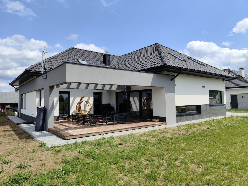Realizacja okien, drzwi, bramy oraz rolet dla projektu domu HomeKoncept 26. Nasza firma wzięła czynny udział w przygotowaniu domu do zamieszkania. Nasi klienci zdecydowali się na okna PCV na profilu marki Gealan, model S9000, zapewniające wysoką izolacyjność termiczną i trwałość. Wizytówkę domu stanowią eleganckie i nowoczesne drzwi zewnętrzne firmy PARMAX, które harmonijnie komponują się z elewacją. Rolety zewnętrzne oraz bramę garażową segmentową dostarczyła firma Krispol, a montaż całego asortymentu zrealizowały trzy niezależne brygady Vidomont, gwarantując precyzję i trwałość instalacji.