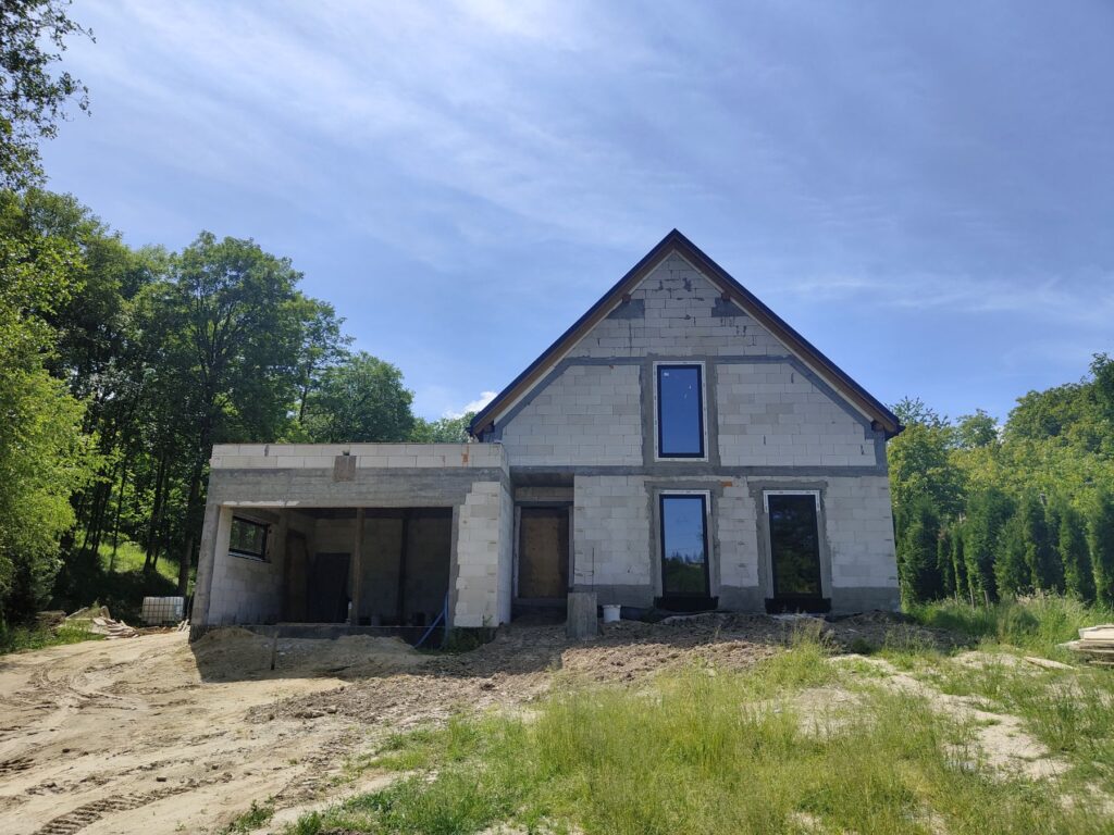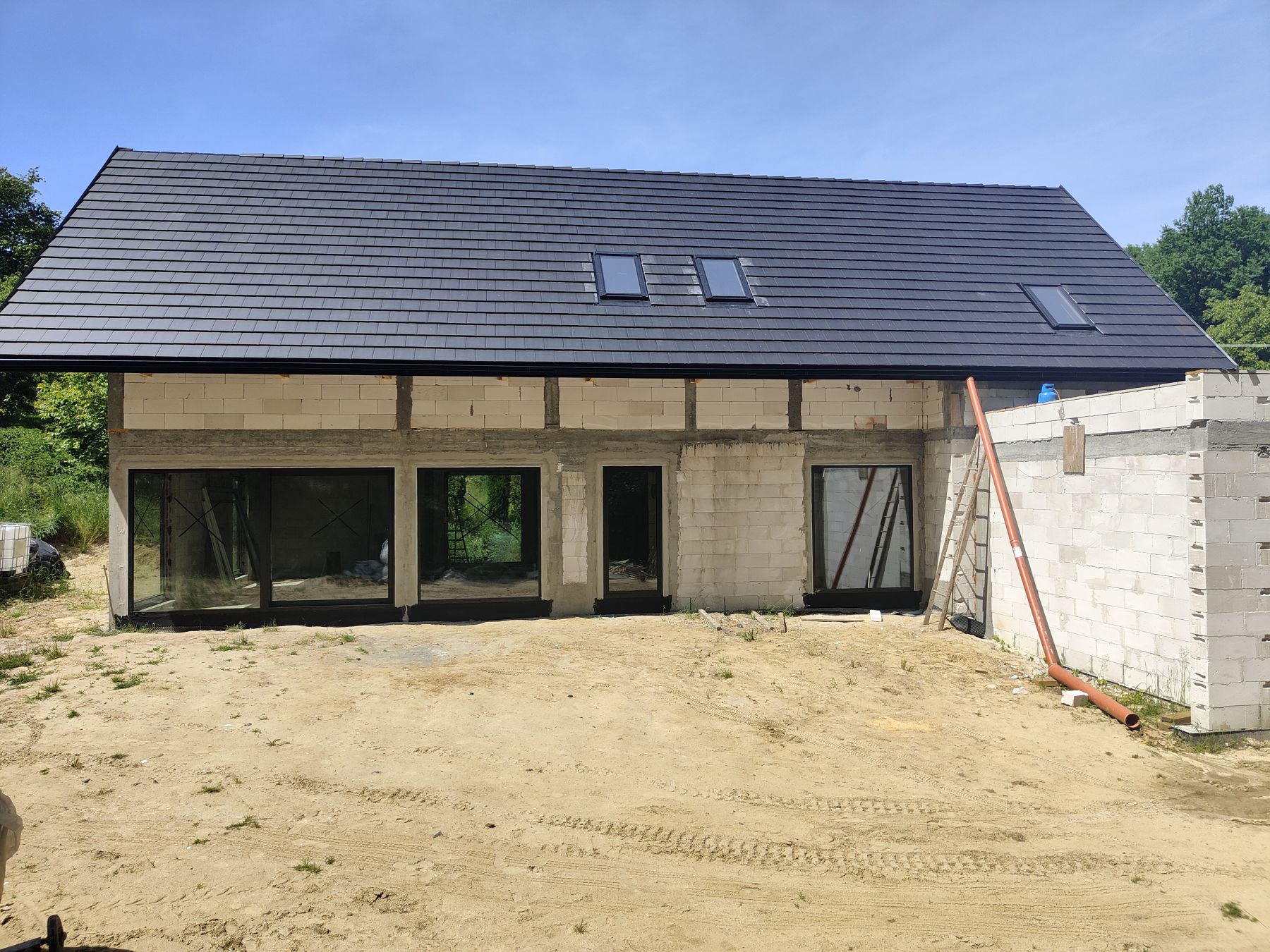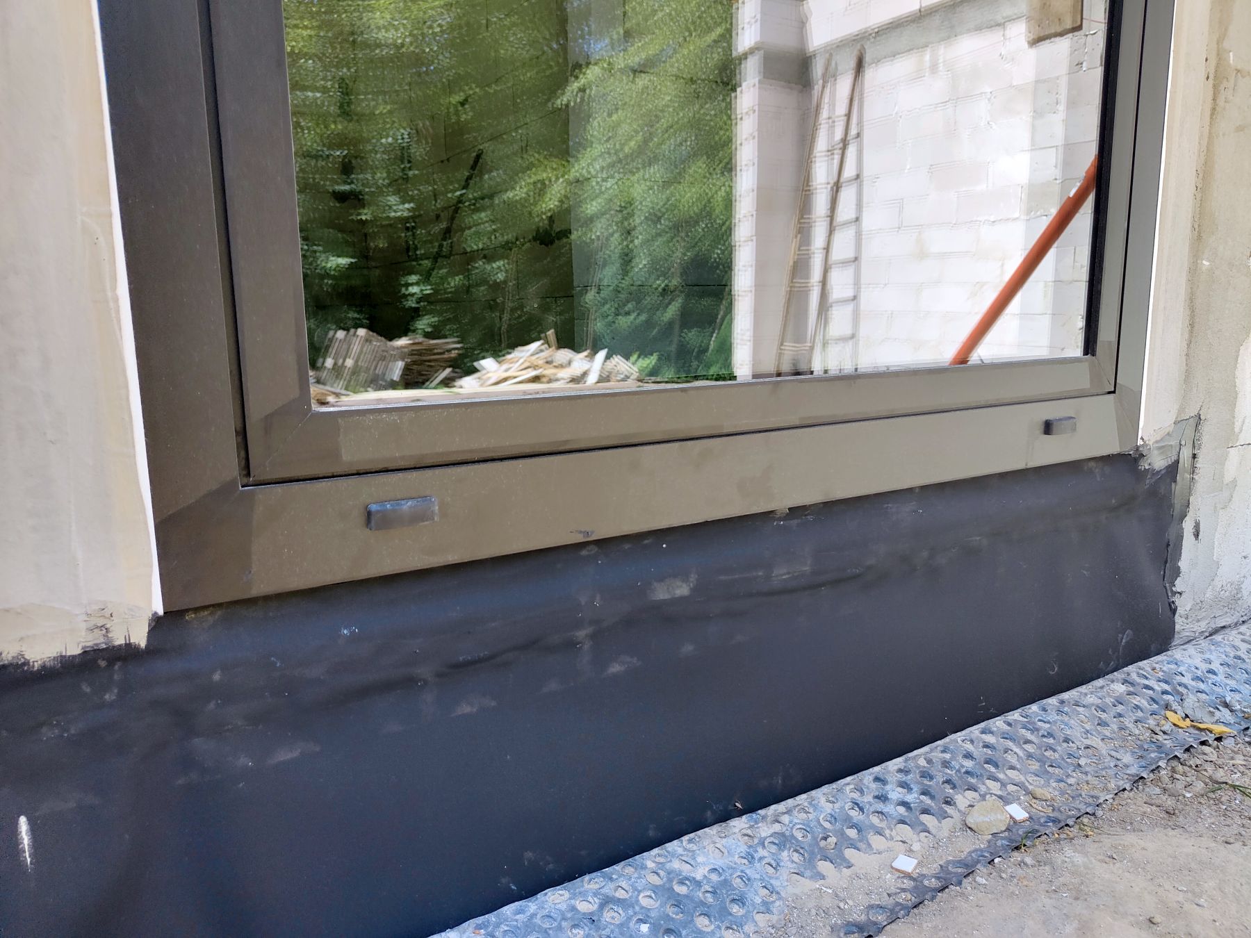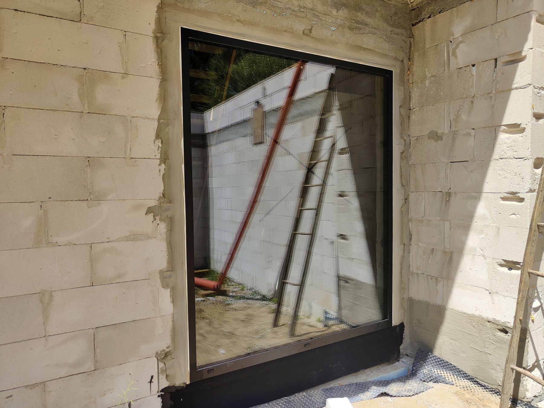 W realizacji zastosowano aluminiowe okna Aluprof MB104 Passive oraz Aluprof MB77HS-HI w wersji otwieranej, stałej i przesuwnej. Stolarka w kolorze czarnym RAL 9005 w strukturze nadała budynkowi elegancki i nowoczesny wygląd. Montaż został wykonany w systemie szczelnego montażu trójwarstwowego z użyciem podwalin klinarytowych, membran wewnętrznych i zewnętrznych oraz hydroizolacji EPDM. Całość dopełnia dokładne doszczelnienie chemią uszczelniającą, co gwarantuje trwałość i energooszczędność konstrukcji.