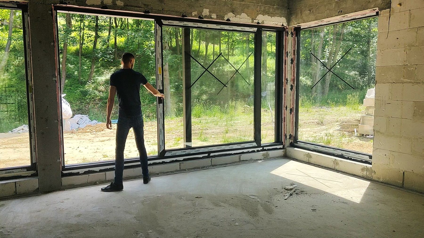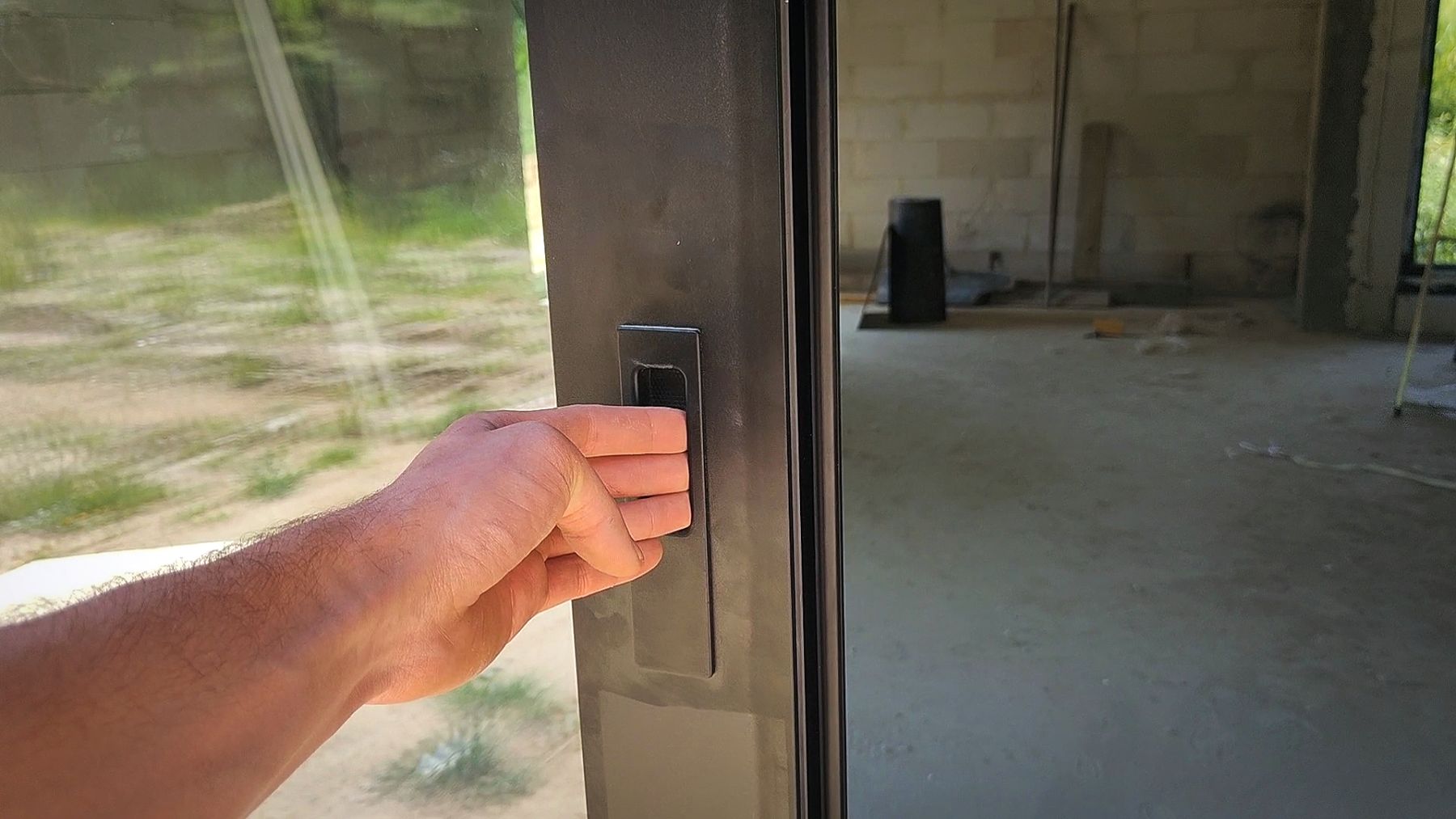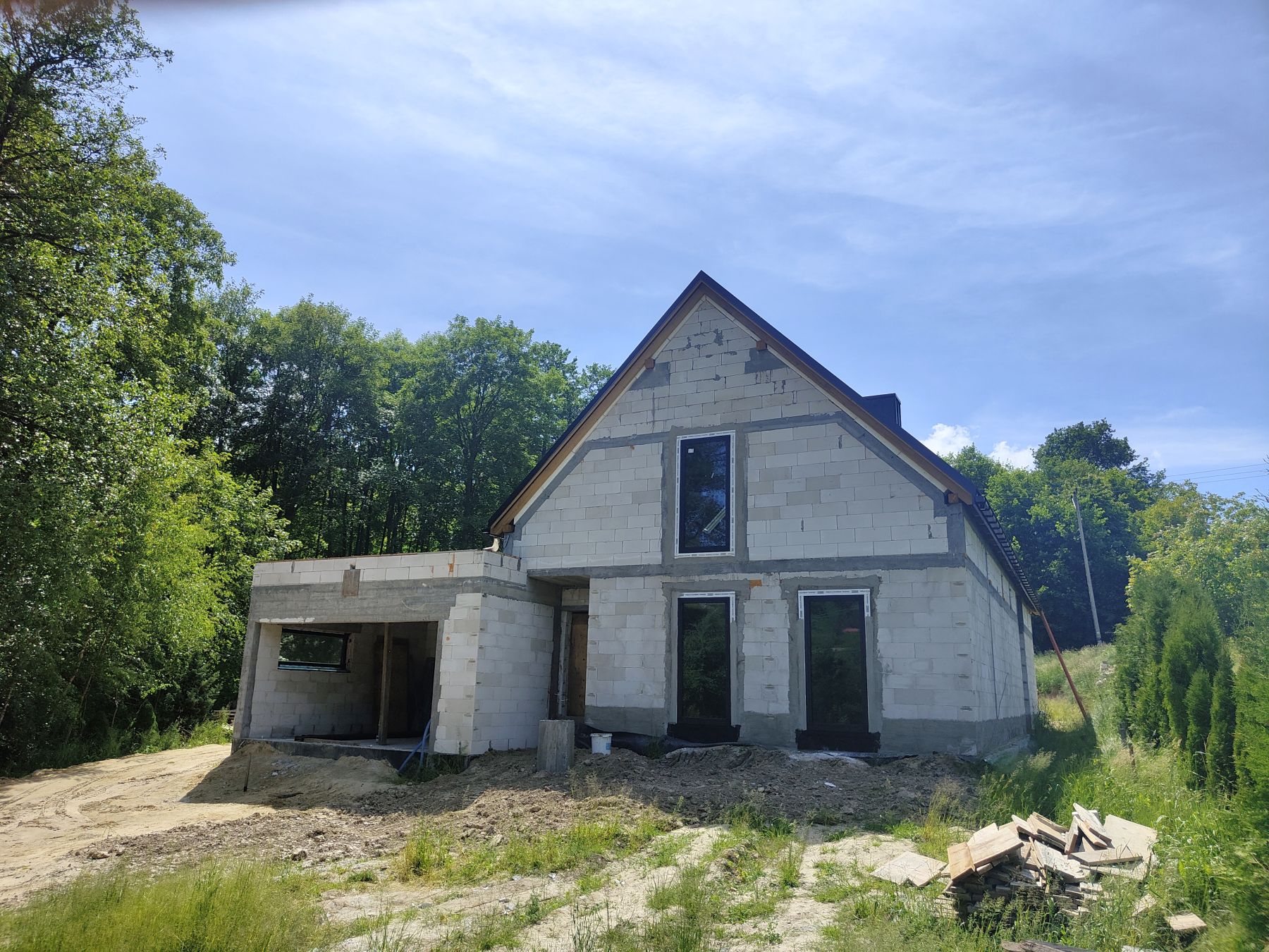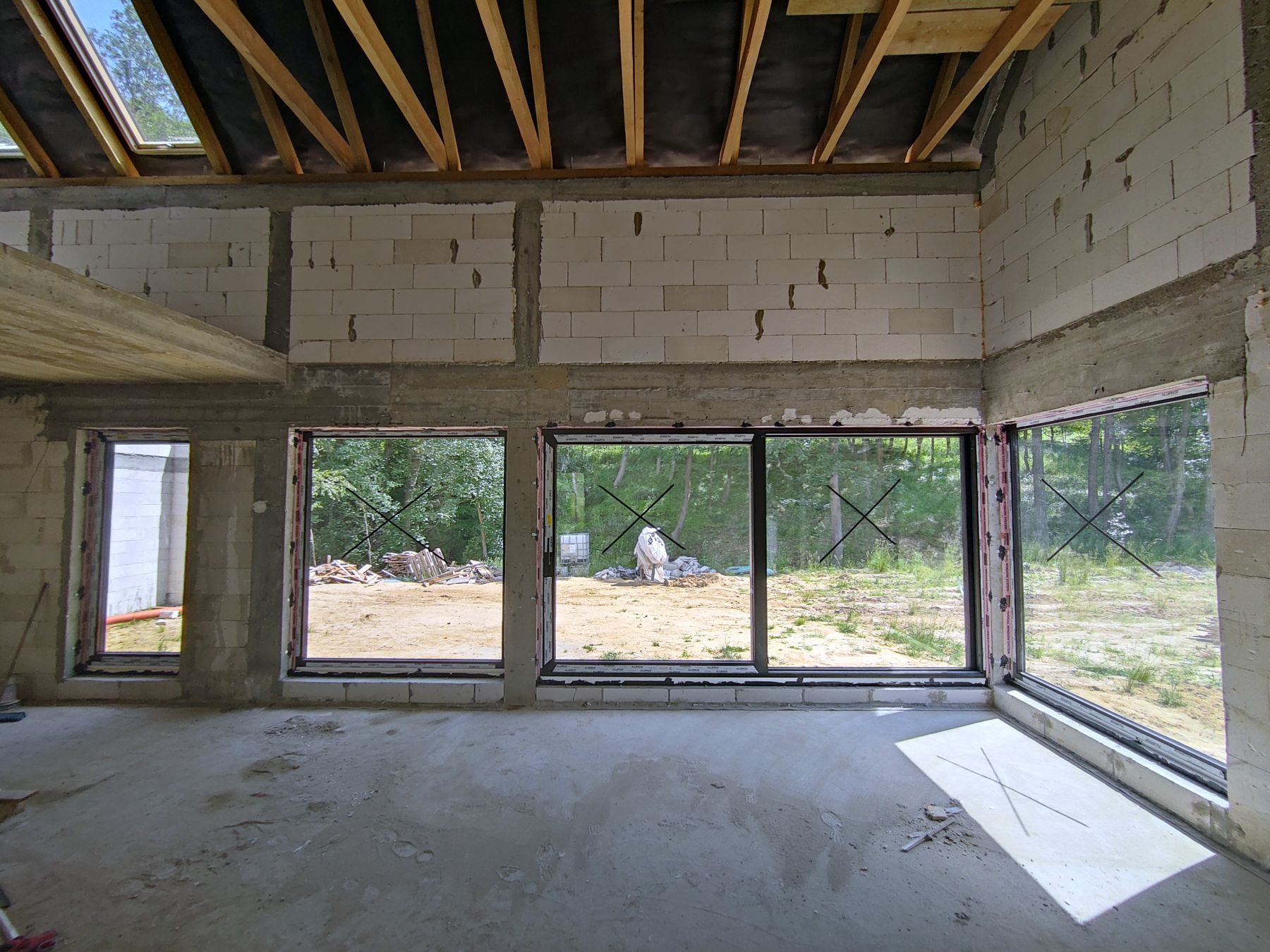 W realizacji zastosowano aluminiowe okna Aluprof MB104 Passive oraz Aluprof MB77HS-HI w wersji otwieranej, stałej i przesuwnej. Stolarka w kolorze czarnym RAL 9005 w strukturze nadała budynkowi elegancki i nowoczesny wygląd. Montaż został wykonany w systemie szczelnego montażu trójwarstwowego z użyciem podwalin klinarytowych, membran wewnętrznych i zewnętrznych oraz hydroizolacji EPDM. Całość dopełnia dokładne doszczelnienie chemią uszczelniającą, co gwarantuje trwałość i energooszczędność konstrukcji.